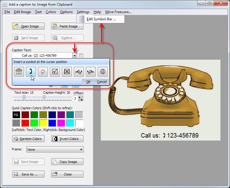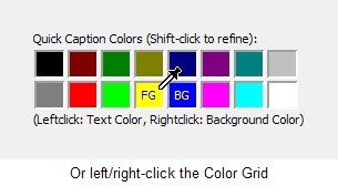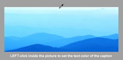 In Add A Caption, there are various methods to set the caption colors (create a contrasting and highly visible caption or a caption which harmonizes with the colors of the picture): Clicking inside the image, or using the Color Grid, or try your luck with random colors, or invert and refine text color and background color.