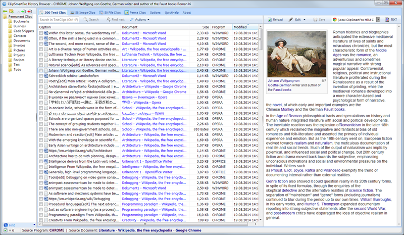 - ClipSmartPro contains a Clipboard Viewer which shows you the current content of the clipboard and the History Browser where you can view, paste and edit the previous clipboard items.