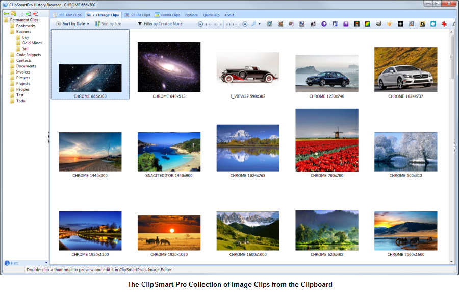 The Windows Clipboard is the most important channel for data exchange between different programs. ClipSmartPro optimizes this channel and makes it much more efficient by providing a powerful database of Text Clips, Image Clips and File Clips: