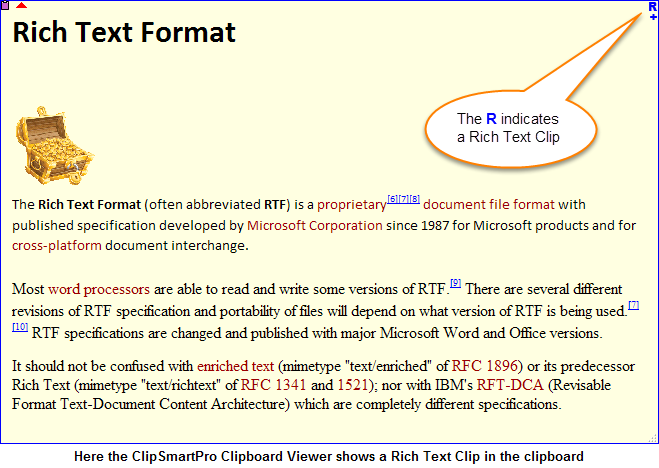 - Show basic information about the current clipboard content by clicking on the yellow ClipSmartPro window and then pressing the "I" key on your keyboard; or get even more details with Ctrl-I