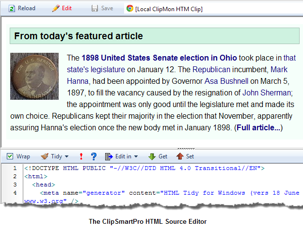 ClipSmartPro contains a WYSIWYG and HTML Source Editor. In WYSIWYG edit mode you can edit text and basic formattings, in the HTML Source Editor you can edit, clean and export the HTML source code of your Web/HTML Clips.