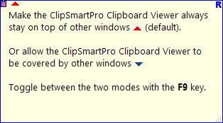 New: Toggle the Stay-On-Top mode of the Clipboard Viewer with the F9 key